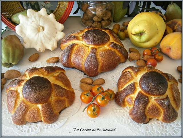 Muy lejos del original os dejo mi versión, con la que he tenido algún "problemilla" en la elaboración, pues esas tiras por encima del pan me costó mucho que se asemejaran a "huesos", supongo que practicando se podrían mejorar.. y porque no ?? una versión "europea" en forma de brioche en molde...