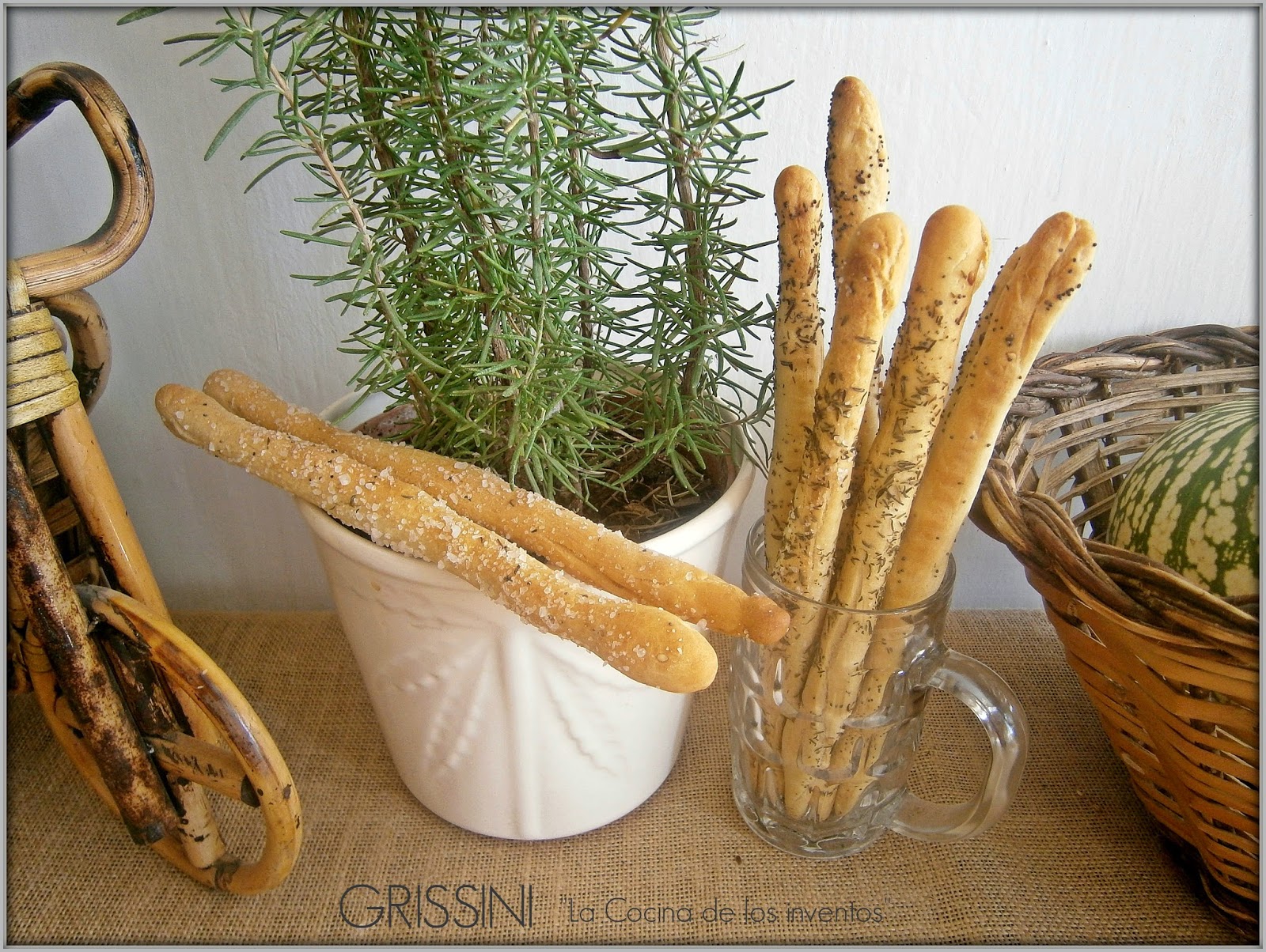 ¡¡ Cuánto tiempo he tardado en experimentar con esta masa y forma de pan !!! Resultan entretenidos en su elaboración, si, pero vale la pena, igual rebozados de sal gruesa, que con hierbas provenzales o con semillas resultan irresistibles!! con poquísimos ingredientes conseguimos una buena cantidad de caprichosos y caseros Grissinis para todos los gustos.